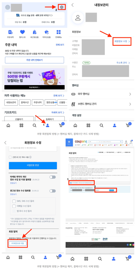 쿠팡 회원 탈퇴 방법 (PC 웹 기준)