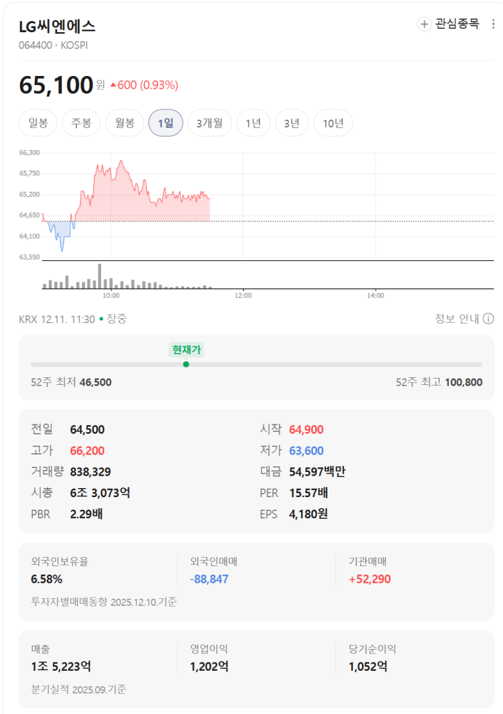 | 4 | 배당 기대감 | LG 그룹 특유의 주주환원 정책 + 연말 배당 시즌 도래 |